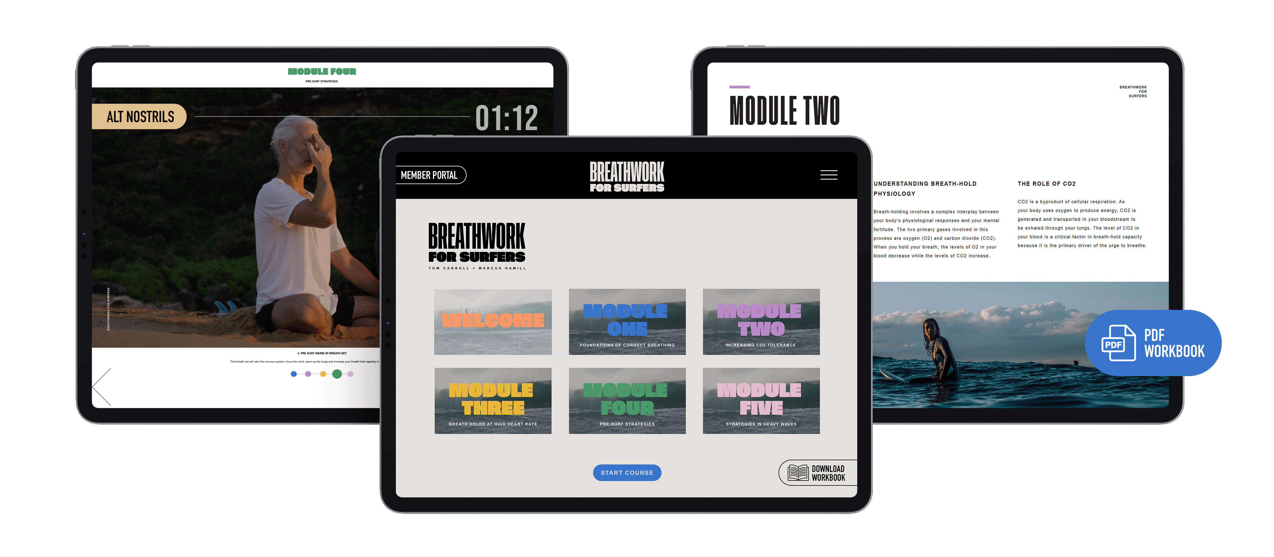 The course runs over 5 modules and 18 videos. It unfolds sequentially and includes discussions, seated breathwork practices, along with beginners and advanced high intensity breath hold training. You'll continue practicing and integrating the techniques and the benefits will increase over time.